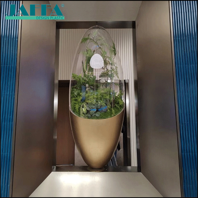 Crafted with acrylic heat-bending technology to create a smooth egg/teardrop-shaped enclosed window, integrating natural greenery with modern aesthetics to become an ecological art focal point in the space.