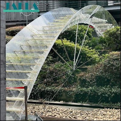 Answer: The stair treads are made of thickened acrylic, supported by steel structure keels and stainless steel cables. Professional mechanical calculation ensures the load-bearing capacity up to 350kg/㎡, complying with overseas public staircase safety standards.