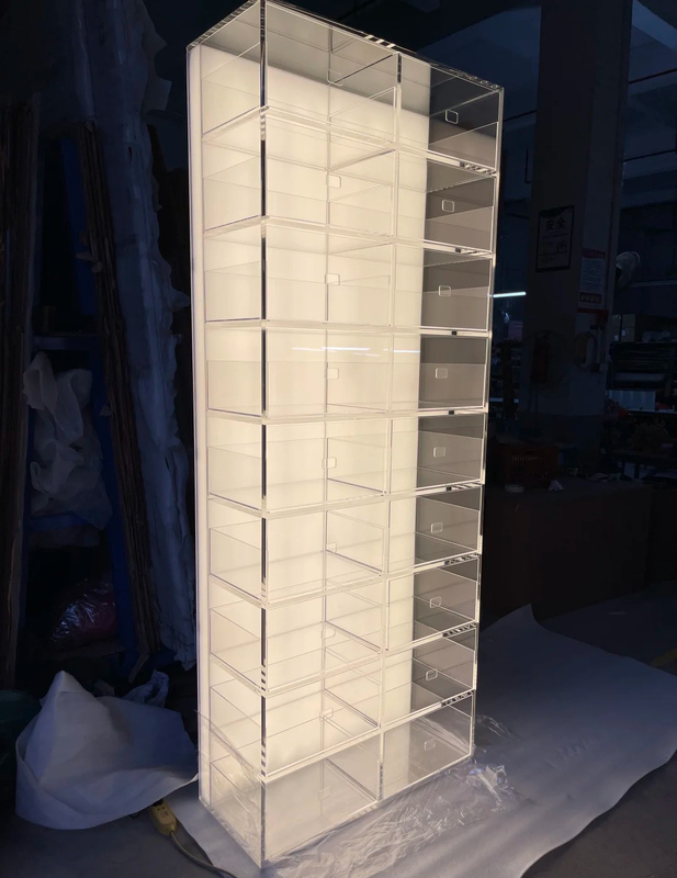 Acrylic modular display stands center on standardized modules, supporting free splicing, stacking, and combination to create exclusive storage display systems. No longer single display stands, they are "Lego-style" space solutions – horizontally spliced into display walls, vertically stacked into storage towers, and paired with diverse modules (drawer-style, open-style, lit-style) to adapt to spaces from desktops to entire walls, ideal for toy collectors, cultural and creative studios, and commercial displays.